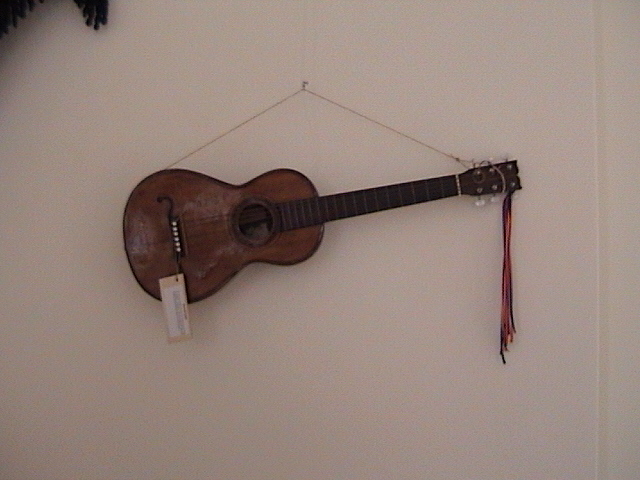 esquerda, em cima, podemos ver uma guitarra popular, com um tamanho
